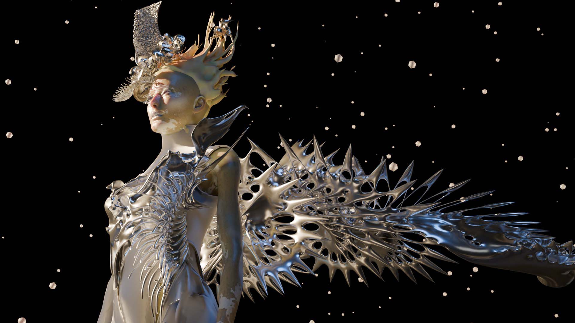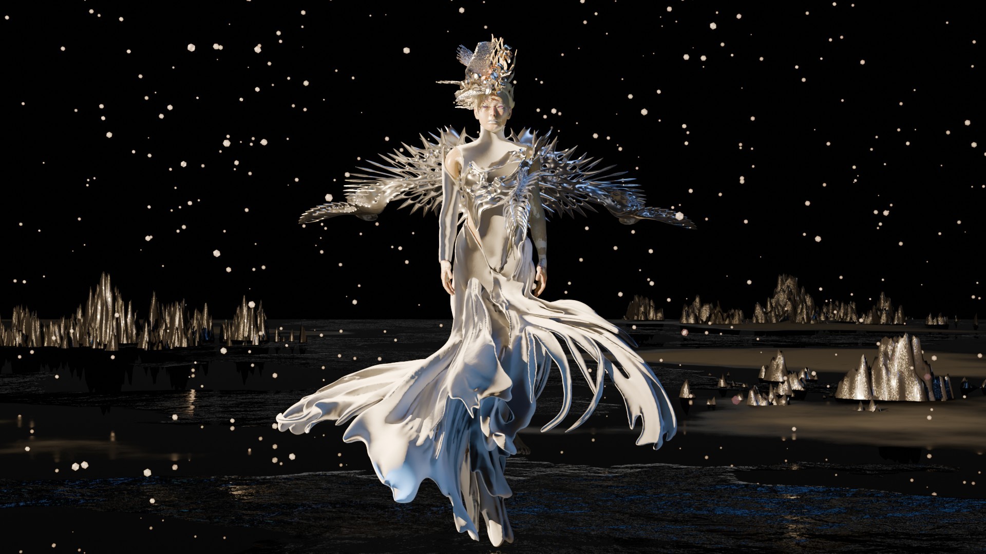 本季作品以“织羽人”为主题,既是对羽翼记忆的考古,也是对后人类飞翔的预言。织羽人穿梭数字时空,用算法编织失落的飞行记忆。每一片金属羽翼镌刻着古老飞行密码,光线穿透时折射出人类对飞翔的永恒渴望。